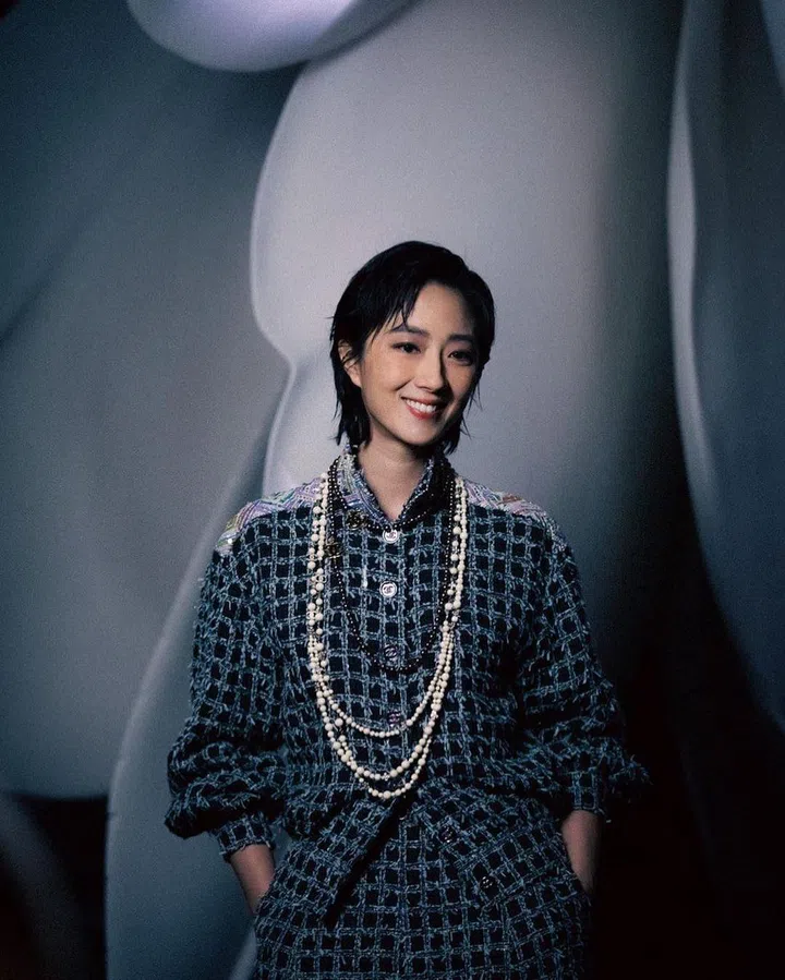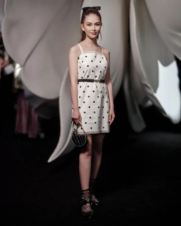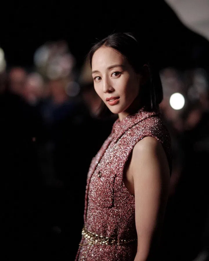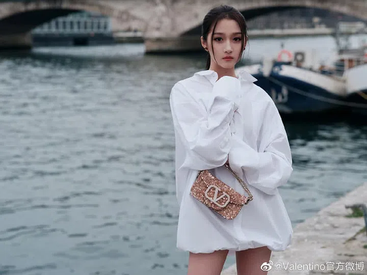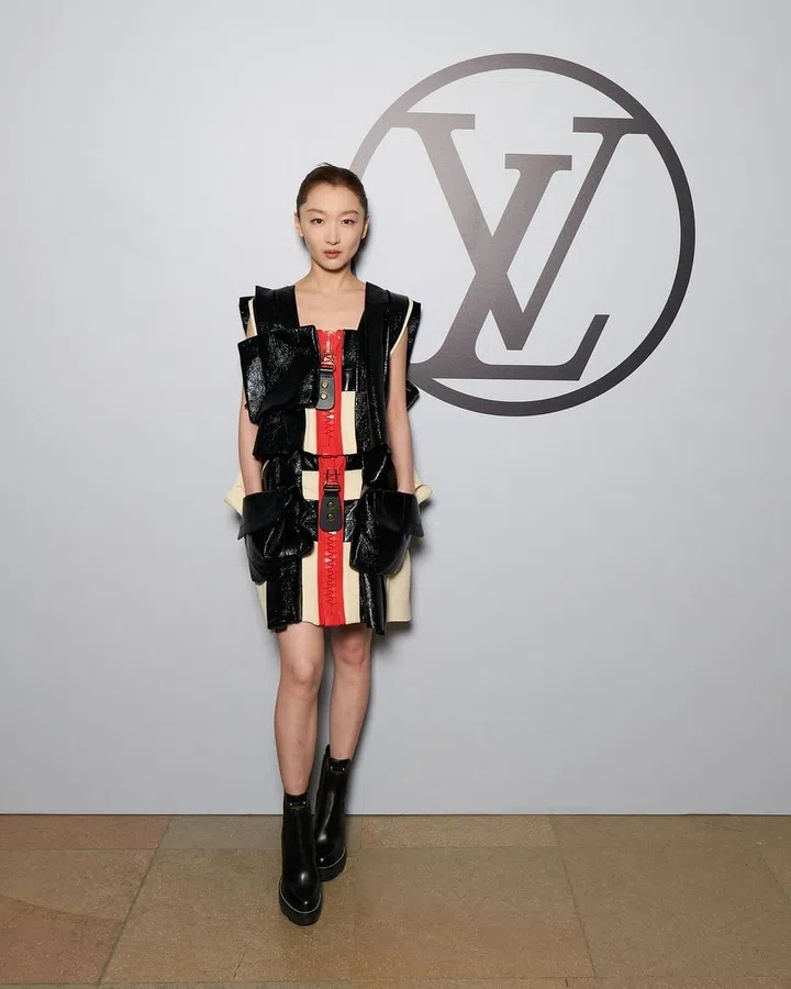 品牌代言人周冬雨身穿Louis Vuitton 2023春夏造型, 展现兼具优雅和大胆的法式风格。