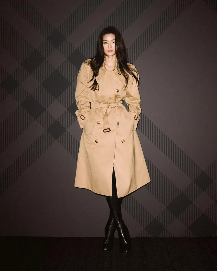 Burberry 2023 秋冬大秀是新任品牌创意总监Daniel Lee的首秀,特别邀请品牌代言人全智贤到场助阵,只见她身穿标志性的双排扣风衣与长靴,光影环绕下映射魅力身姿。