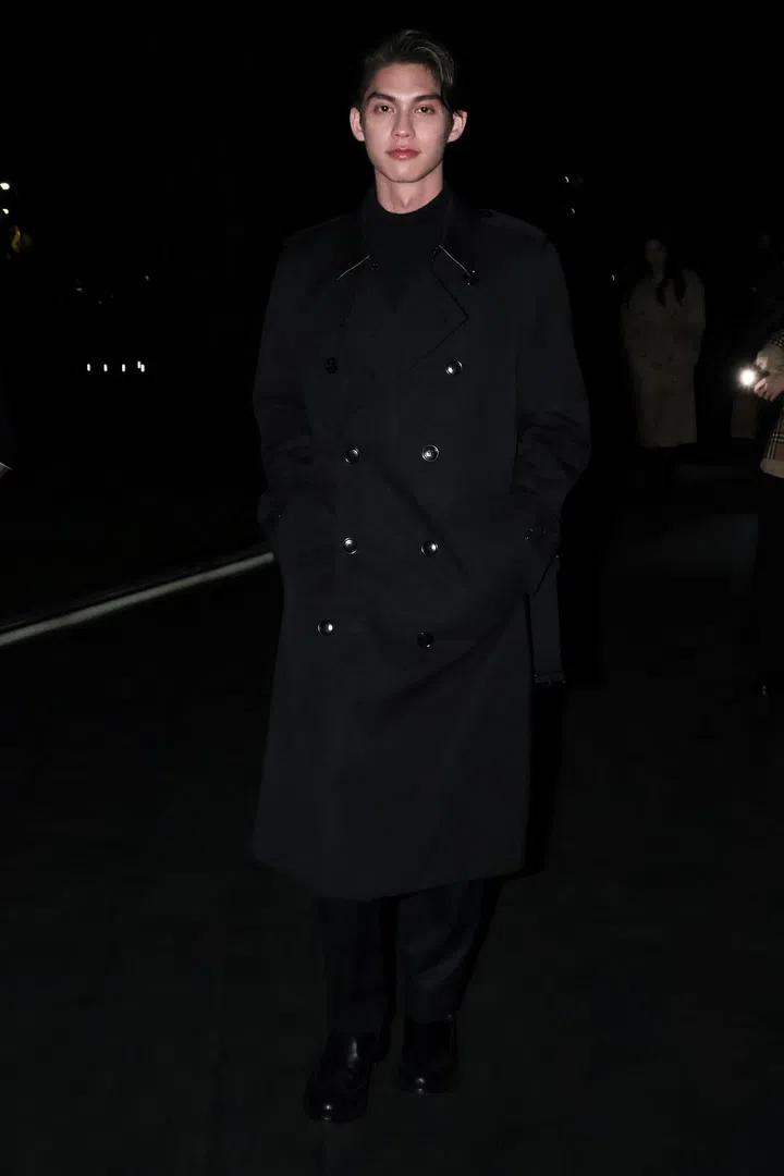 身为Burberry南亚太地区品牌大使的泰国男神Bright身着品牌经典黑色风衣,展现英式优雅绅士格调。