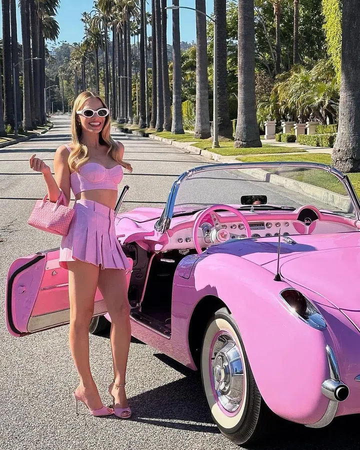 出席《Barbie》电影宣传活动的Margot Robbie,身穿Bottega Veneta定制丝质百褶裙及背心胸衣,两截剪裁勾勒出苗条身形,配上品牌的迷你Cabat手袋,成功掀起粉色风潮,不愧是真人芭比的扮演者。