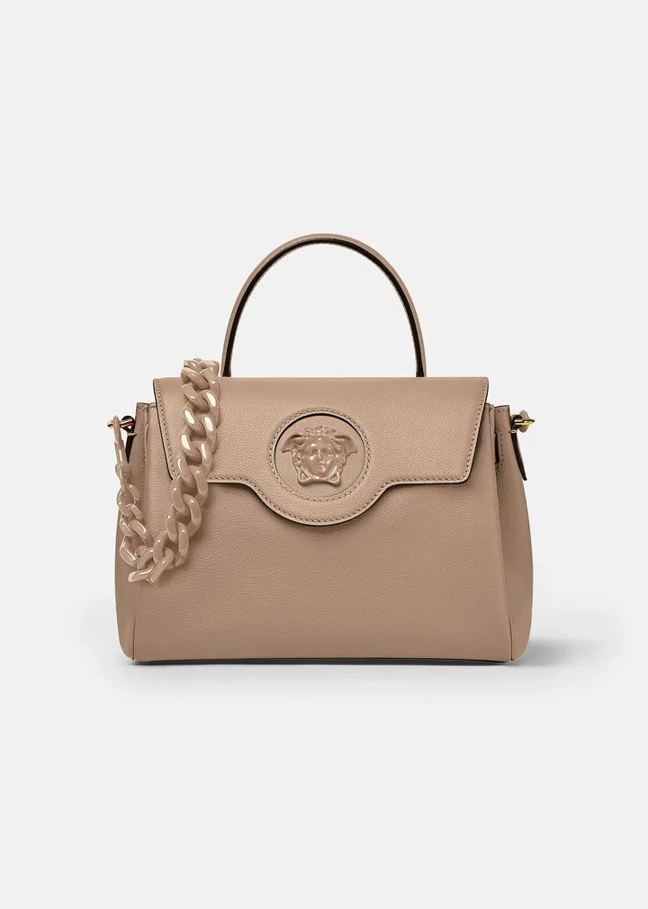 Versace 2021春夏系列推出全新手袋系列 La Medusa,以缤纷夺目的色调,打造各款彰显积极活力与能量的手袋。这款偏深的燕麦色手袋,俏皮不失优雅,与日常搭配造型更灵活,可挂在手腕上或肩背。