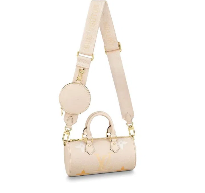 Louis Vuitton全新夏季系列By the Pool,主打渐变色Monogram设计,推出了两款新手袋,其中之一是这款Papillon BB手袋。外形精致玲珑的手袋以 Monogram Empreinte皮革制作而成,缀有渐变色的Monogram图案,可拆卸提花肩带传递运动气息,可拆卸圆形零钱袋再添趣味一笔。淡雅的燕麦色,也为这款时髦手袋增添一份内敛的格调。