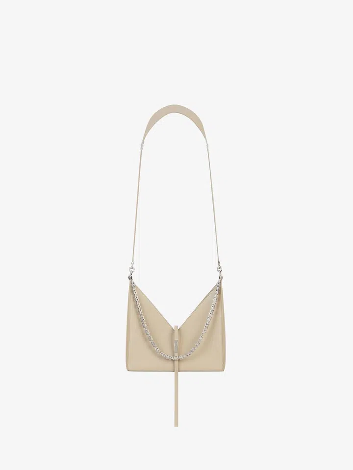 风格前卫的几何形手袋,献给品味独树一帜的都会女子。Givenchy 2021春夏新作,创意总监 Matthew M. Williams 将“Hardware”(金属件)作为新季手袋的核心元素,打造全新的Cut-Out手袋。纯色小牛皮材质,棱角分明的几何形轮廓,缀以4G徽饰组成的金属锁链,充满个性态度。