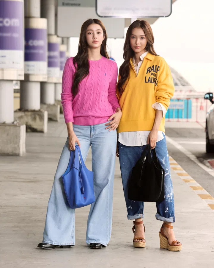 泰国演员‘Namtan’ Tipnaree Weerawatnodom和‘Film’ Rachanun身穿Polo Ralph Lauren造型现身机场,启程前往巴黎出席Polo Ralph Lauren 2026 春夏女装发布会。Namtan身穿Polo Ralph Lauren身穿Cable-Knit棉质圆领针织衫、高腰阔腿牛仔裤,搭配Polo Play皮革托特包;Film则身穿宽松版型牛津纺衬衫、Logo 羊毛抓绒拉链卫衣、宽松锥形牛仔裤,搭配Polo Play羊羔毛托特包。