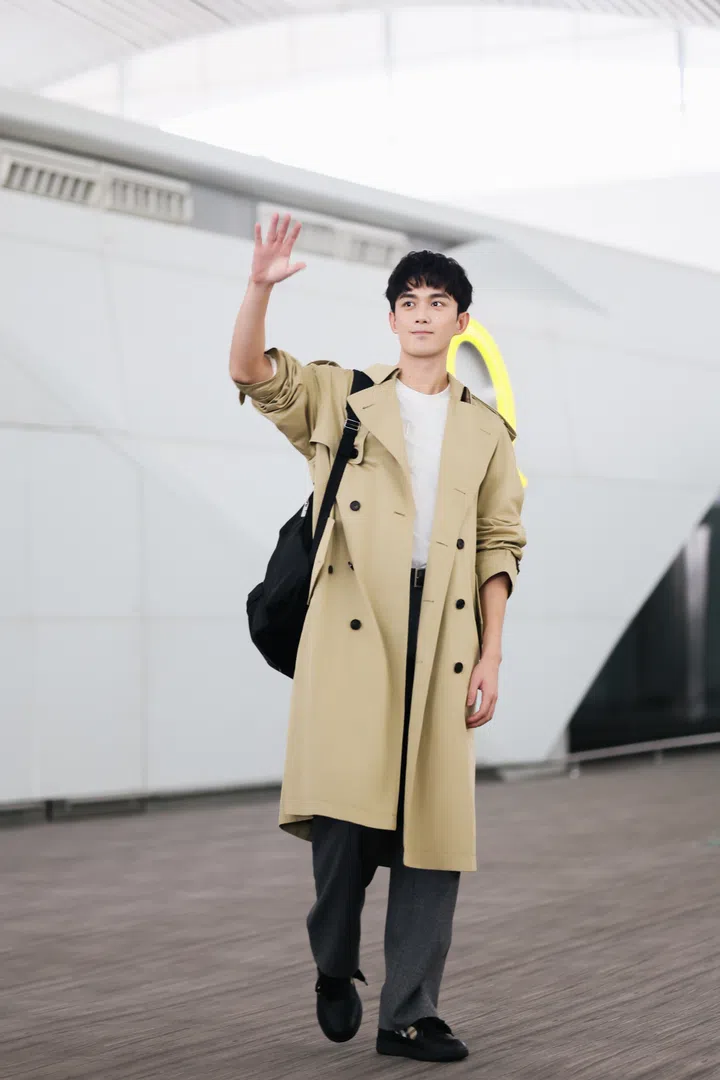 品牌代言人吴磊身穿Burberry Trench风衣飞往伦敦出席Burberry2026夏季系 时装秀,防护性嘎巴甸面料加持率意型姿,演绎英伦格调。