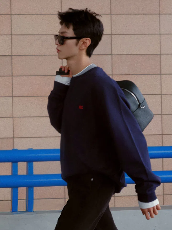 泰国品牌大使大能Thanaerng身着Bottega Veneta棉质套头衫与棉毛斜纹长裤,脚踩Eliot运动鞋,搭配Campana手袋与 Odyssey Intrecciato登机行李箱。