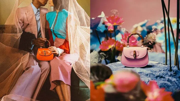 Gucci竹节包在《Aria-时尚咏叹调》中强势回归,这款标志性的手袋在不同时代的演变之下,成为品牌标志性象征。延续竹节手柄和圆润马鞍包设计,发布了迷你尺寸和一系列糖果配色,运用现代手法焕新演绎经典元素,漂亮呈现Gucci Bamboo 1947系列,营造梦幻气息。