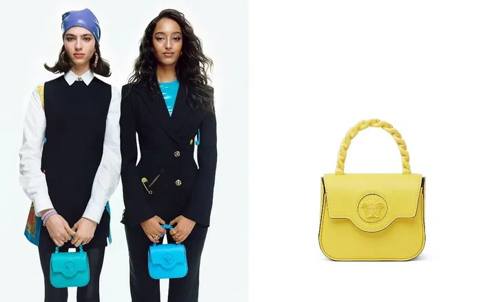 糖果色,特别适合阳光明媚的春夏!Versace 2022春夏手袋渲染着梦幻的色彩,带来满满元气。品牌经典La Medusa美杜莎包包推出樱花粉、青草绿、香芋紫、柠檬黄等明亮色调,而La Medusa Mini手袋的亮点在于手袋上的锁链元素,粗犷的锁链和美杜莎徽标漆刷糖果色涂层,洋溢清甜少女感。