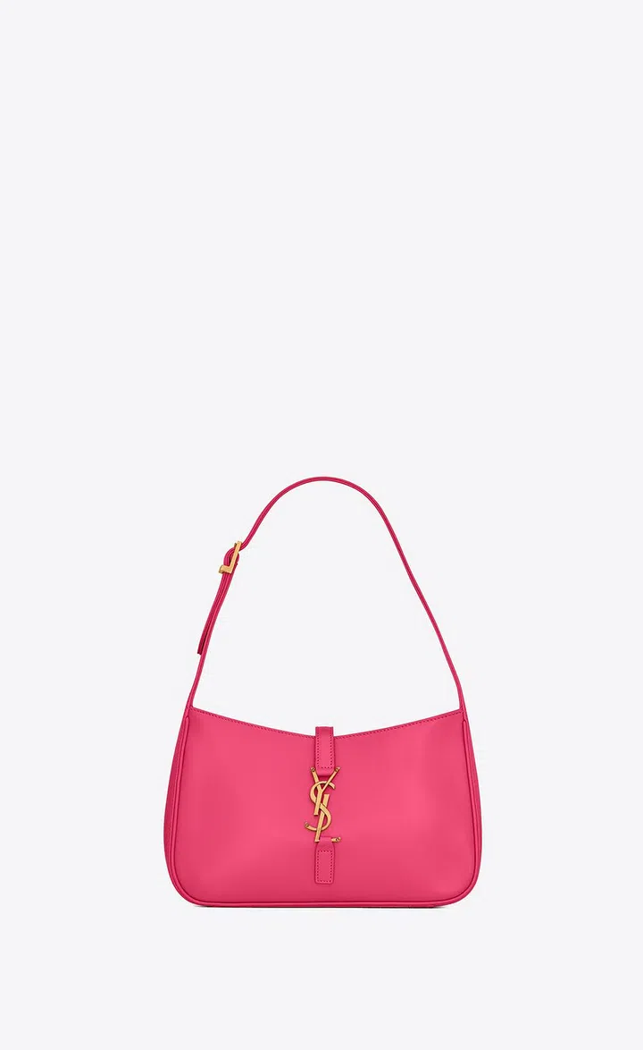 “Le 5 À 7”(Cinq à sept)是一个法语俚语,泛指下班后回家前的悠闲时光,也包含一层 “与情人幽会的时光 ”之意。Saint Laurent以此为名打造 Le 5 À 7 Hobo手袋,以采用极简的半月包型搭配品牌标志性 YSL 徽标搭扣,时尚大气。其中,这款以泡泡糖粉色打造的手袋,甜美可口,满足少女心。