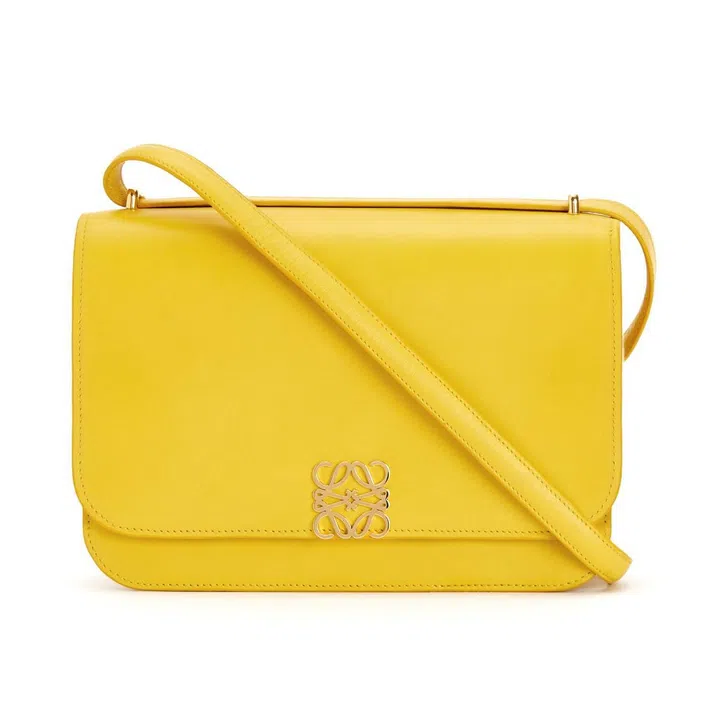 LOEWE 2021秋冬发布全新 Goya 手袋,取名字自18世纪西班牙宫廷画家 Francisco Goya,方形包身配上醒目的Anagram 金属搭扣,选用亮黄色、青蓝色、深红色等油彩色调,亮眼而利落。