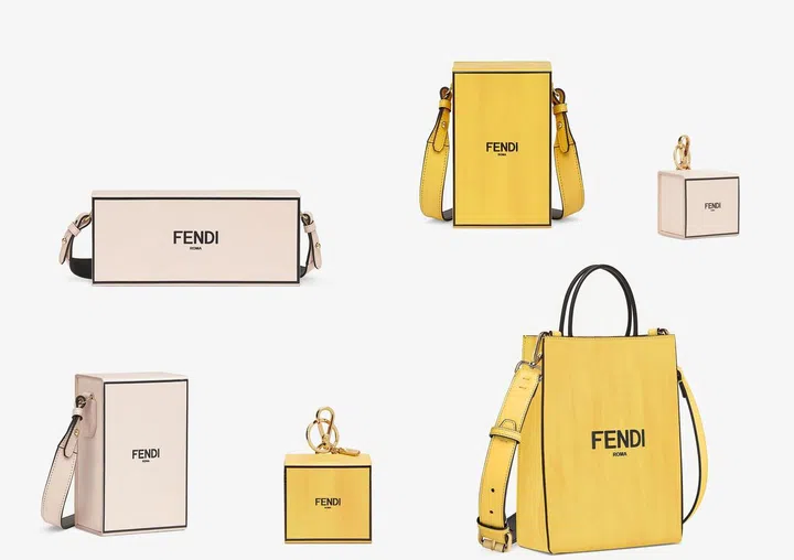 Fendi 2020年的节日精选,就是许多明星与时尚博主都在背的Fendi Pack系列手袋!以品牌经典包装为灵感,用故意做旧的小牛皮模拟羊皮纸的质感,做成硬质小盒子、纸袋造型,俏皮又极具特色。