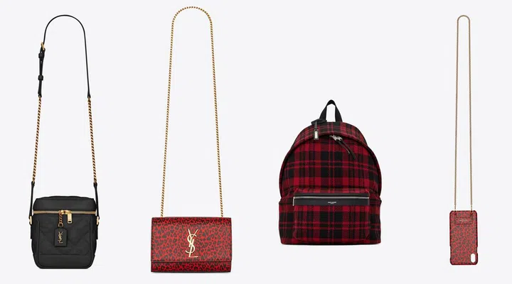 圣诞节会让你想起什么颜色呢?大多数人应该会想到红色与绿色吧?Saint Laurent今年的圣诞胶囊系列,就以喜庆的红色为主,品牌经典款Kate Chain手袋及带链的Iphone手机壳皆以红色豹纹为印花,而City Backpack则以优雅的红色格子呢羊毛制成。如果想选择较为低调的款式,也可考虑黑色缝皮革化妆包。