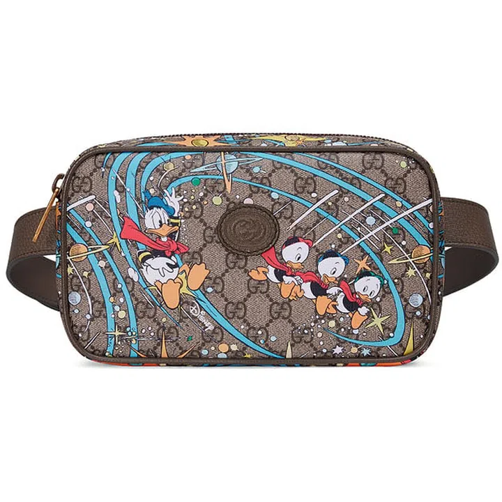 品牌总监Alessandro Michele第一次使用Donald Duck是在2017年春夏男装系列,这次Gucci最新Epilogue系列与Disney再度合作,不仅有Mickey Mouse元素设计,也将Mickey的好朋友Donald Duck请来助阵。