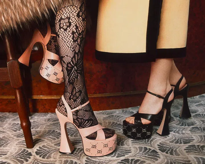 Gucci 2022年假日礼赞系列形象广告从旅行世界中汲取灵感,向品牌的创始历史和传统致敬。在Gucci礼品的世界里,无论您是想犒劳自己,还是想为特别之人奉上一份惊喜,各种愿望都能通过梦幻好礼得以实现。为了迎合日常和派对,Gucci推出亮眼的厚底高跟凉鞋,底部缀有闪亮的品牌标志,别致而醒目,特别适合佳节欢乐氛围。