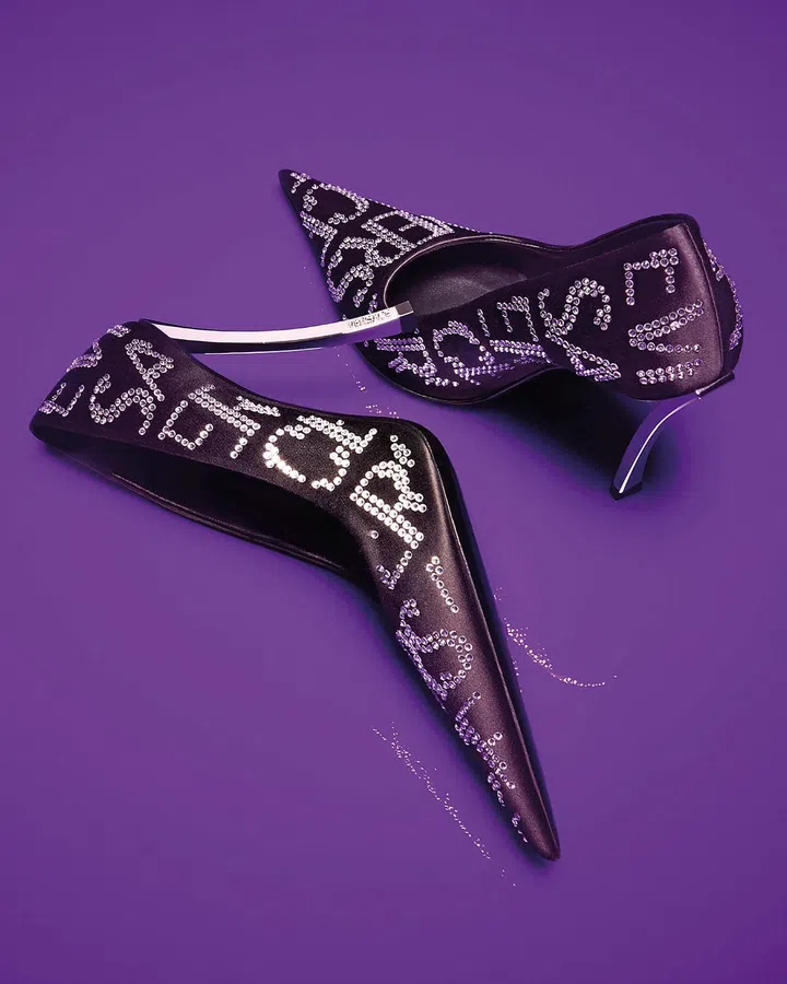 弧形细高跟的Versace Pin-Point高跟鞋,尖头设计搭配熠熠闪耀的水晶Logo印花,散发出精致高雅的格调。无论是搭配
