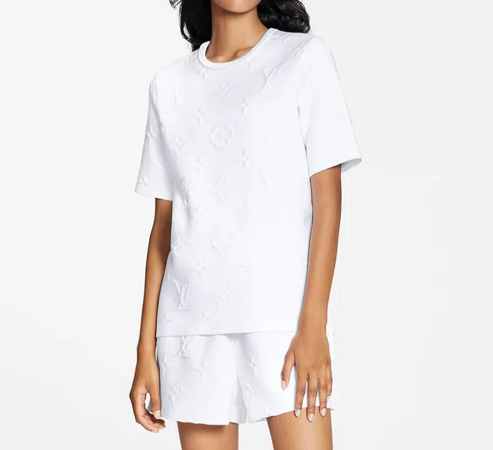 经典的Louis VuittonT恤配上新元素重返本季。柔软棉质混纺针织压印超大 3D Monogram 图案,搭配罗纹圆领,共有白色和蓝色选择,洋溢清新夏日氛围。