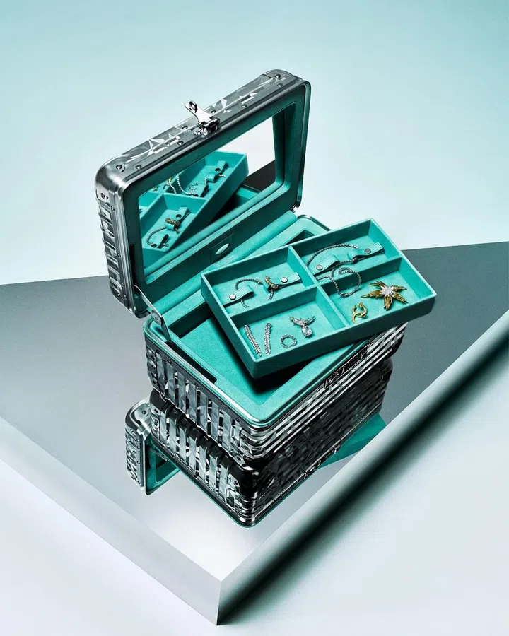 世界精品集团LVMH旗下两大品牌日默瓦(Rimowa)与蒂芙尼(Tiffany & Co.)携手合作,打造RIMOWA x Tiffany & Co.限量联名珠宝收纳箱、登机箱以及迷你箱三款单品,将美学与用途相结合,以创新重新定义旅行的界限。