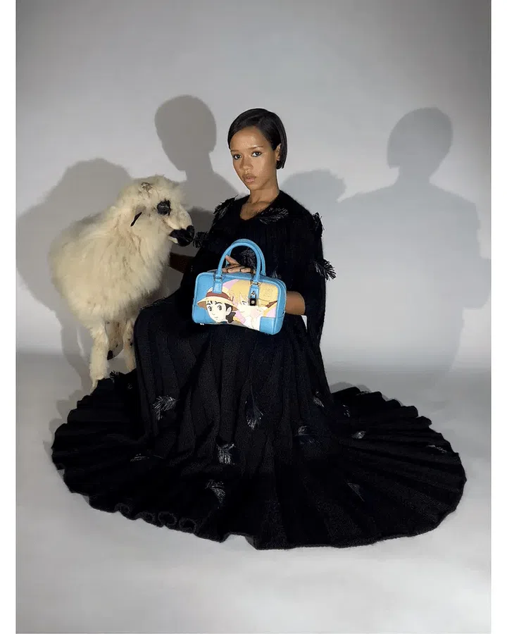继2021 年《龙猫》系列、2022年的《神隐少女》系列之后,Loewe 与吉卜力工作室(Studio Ghibli)带来最后一个联程系列,以2004 年上映的《霍尔的移动城堡》(Howl’s Moving Castle)为主题,推出超过百件的俏皮单品,当中包括成衣、手袋、钱包及围巾等。