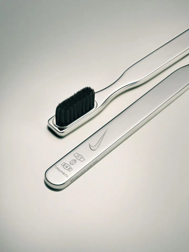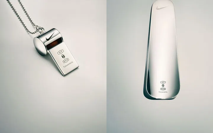 联名系列中的周边商品包括了哨子、鞋拔、鞋刷,以及联名鞋款专属Dubrae鞋带扣,每件单品均采用了Tiffany & Co.标志性的纯银材质打造,无不不散发两大品牌的经典元素。