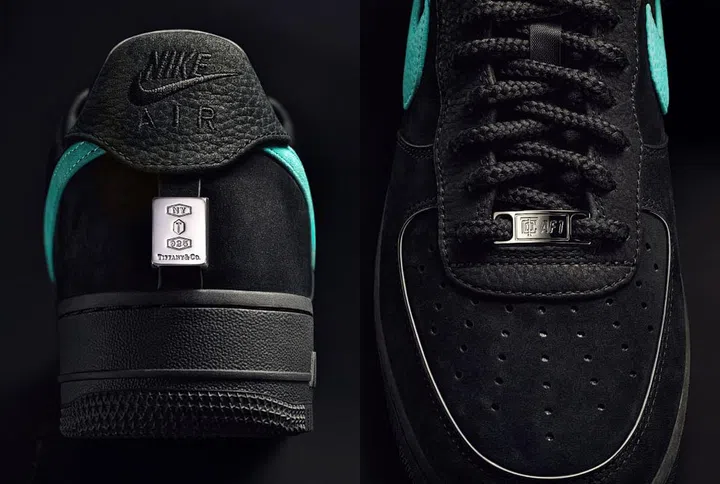 以“Legendary Pair”为名,该联名企划标志着双方的首次官方合作,系列除了包括低帮版本的Air Force 1 1837 之外,更带来多件限量纯银配饰周边。Air Force 1 1837采用优质的黑色绒面革制作鞋身,辅以经典Tiffany蓝Swoosh标志点缀鞋面,鞋后跟装饰有Tiffany & Co.标志性的 925纯银银牌。鞋带除了基本黑色款式外,亦有 Tiffany Blue、白、黄色鞋带可供替换,并以Tiffany Blue鞋盒包装。