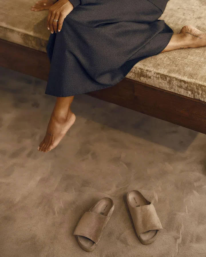 潮流品牌Fear of God与 Birkenstock联手推出全新合作鞋款“Los Feliz”,以Birkenstock高端设计师联名支线1774为主轴,命名源自Fear of God主理人Jerry Lorenzo洛杉矶的家乡Los Feliz,鞋款以经典水泥灰色调呈现,材质上将小牛绒面和羊毛毡结合,宽大的鞋带与鞋面色调相互搭配,整体兼具简约奢华的气息。