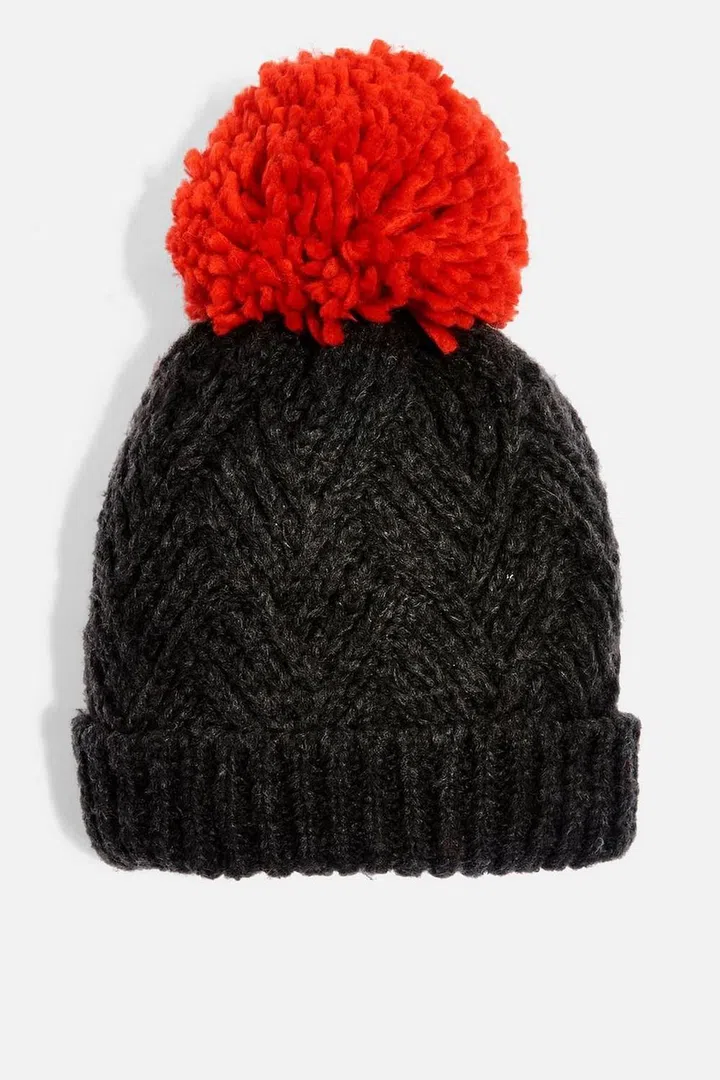 Topshop chevron knitted red pom pom beanie, S$33.90