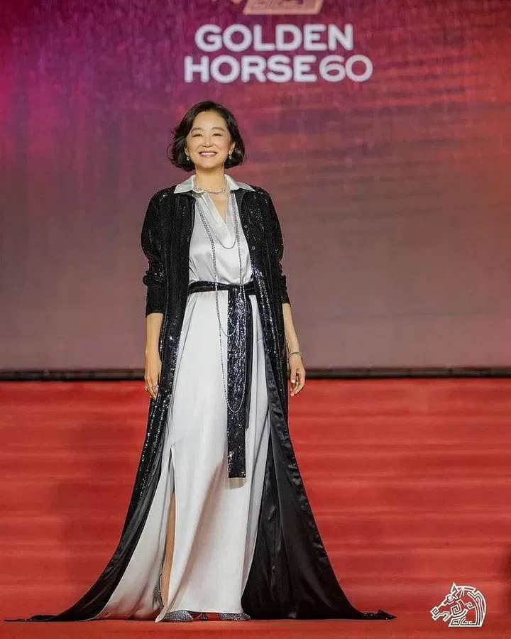 不老女神林青霞以一身Tom Ford 衬衫式长洋装踏上《金马奖》红毯,搭配上闪耀全场的黑色拖曳亮片长袍,展现国际影后的巨星风采。当晚,她也荣获了终身成就奖。