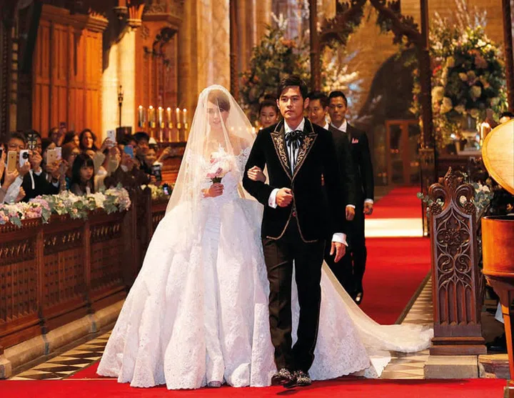 中国演员唐嫣的Mikael D婚纱由她和设计师共同设计。