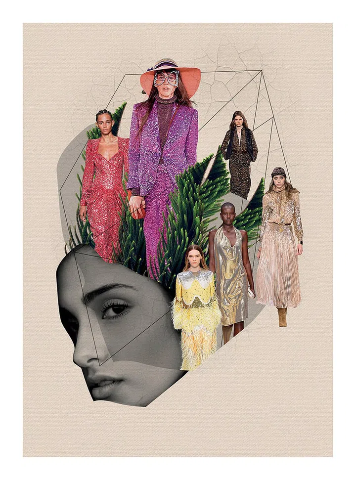时尚总是不断变化,然而亮片始终是设计师们不会放弃的元素,因为它能代表女性的特质,并在2020年春夏散发着独属于它的一份浮华魅力。亮片在灯光下闪烁着光芒,呈现精细工艺与奢华质感的同时,亦为一套服装增添了不少戏剧感。本季,从连衣裙到西装外套,都可见亮片及金葱粉的踪影,不禁让人想起20世纪70年代迪克斯的美好年华。