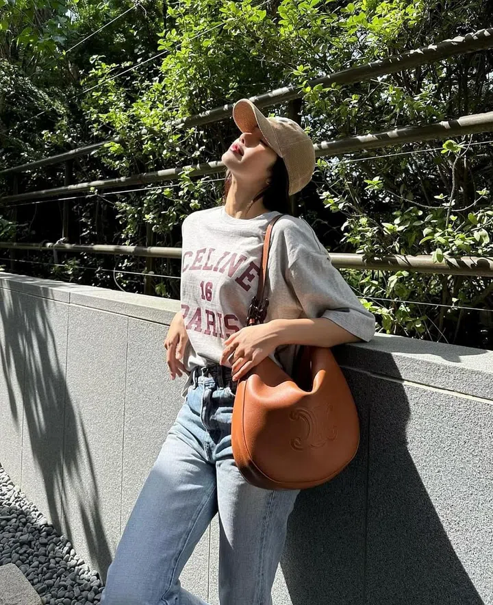 Lisa作为Celine代言人,经常背着品牌的手袋出镜,而近期无论是机场装或日常出行,她最爱用的是新推出的Heloise腋下包。半月形轮廓的包身质感柔软舒适,知性的棕色调百搭不出错。大容量的设计也方便随身携带重要物品,配搭一身休闲造型,让出游既舒适又轻松。