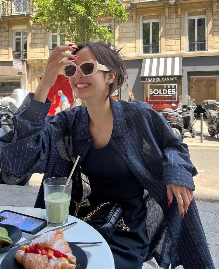 宽松剪裁的衬衫,既可单穿,也可以当外套,堪称出游百搭的必备单品。Lisa是宽松版衬衫的忠实爱好者,从单色系到格纹等不同款式都曾在她身上出现过。在巴黎旅游时,她穿着Supreme的条纹宽松衬衫,虽然是暗色系,但因为材质轻薄,看起来一点也不会显得累赘沉重。搭配小背心和奶油色的Celine墨镜,轻松营造时髦个性。
