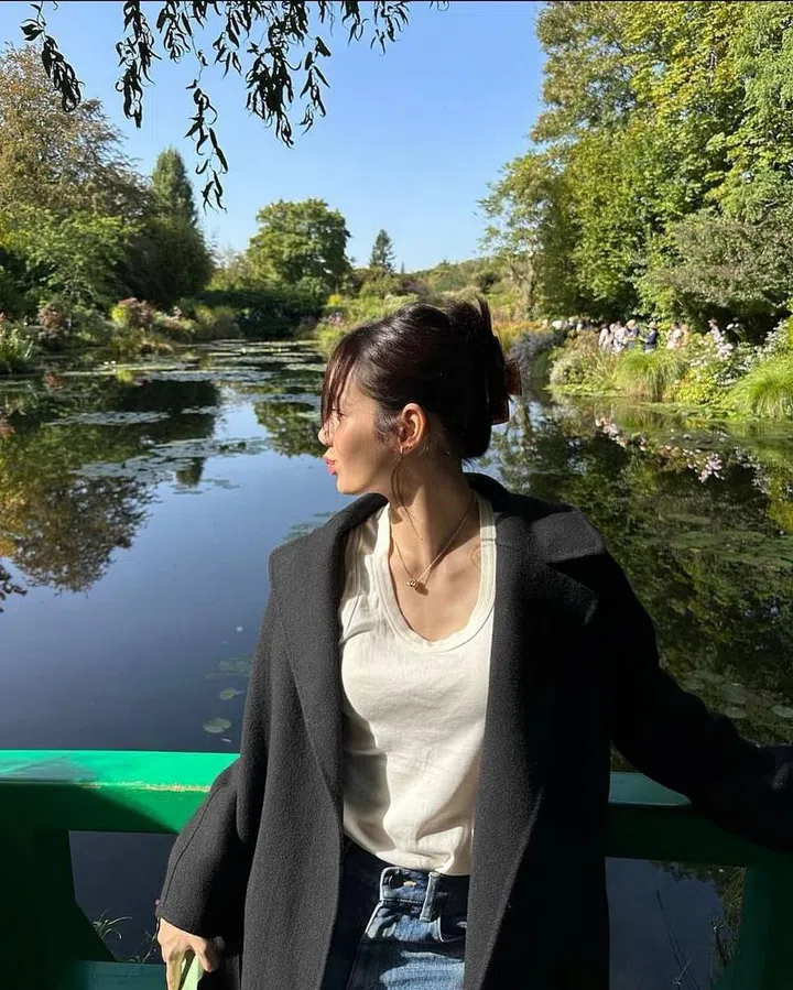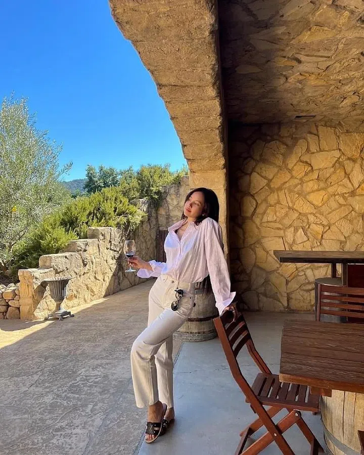 出游不想为穿搭烦恼,选择经典款式不出错。借鉴Lisa的穿搭风格,以女人衣橱中不可或缺的基础单品——白衬衫,搭配白色牛仔裤和黑色凉鞋。刻意露出锁骨部分,宽松剪裁的上衣更能凸显慵懒的松弛感,让你在旅途中保持舒适自在,也展现出优雅的氛围。