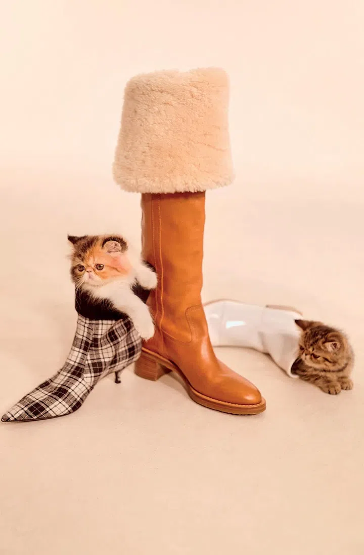 一双舒适时髦的长靴,成为秋冬保暖的时尚必备品。本季,不同材质色彩的皮靴为整体造型增添了几分干练,就连活泼淘气的猫咪也为之着迷,与模特儿一同发挥时尚功力,演绎一系列精彩的时尚大片。