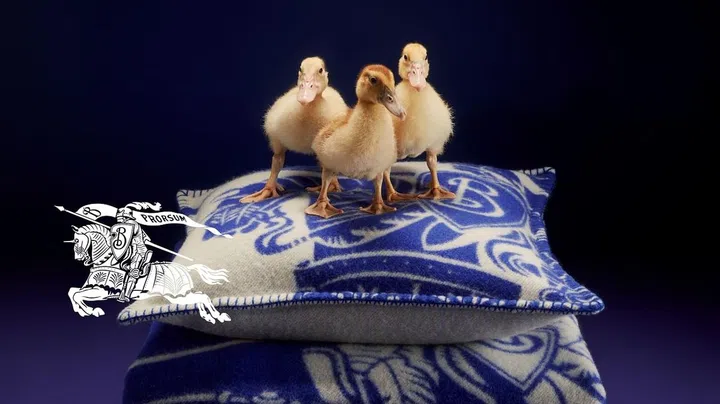 在创意总监Daniel Lee的引领下,Burberry大胆迈向变革之路,2023假日系列的形象大片也展现了独特的英式幽默。由Carina Frey和Stefanie Barth担任创意指导,以可爱的小狗和鸭子取代传统的模特儿,3只小鸭整齐列队于战马骑士羊毛靠垫之上、狗狗与奶油色的麂皮拼毛绒羊皮穆勒鞋相映成趣,还有Rocking Horse手袋,以及品牌最经典的各色格纹羊绒围巾等,通过巧妙的场景布置与镜头设计,突显浓厚的佳节氛围,让人会心一笑。