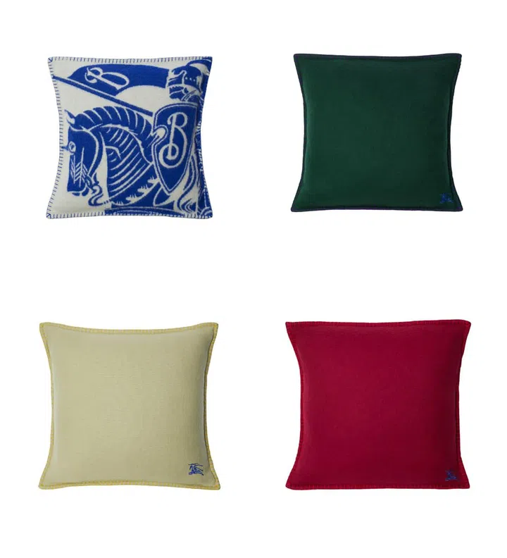 2023年冬季系列中,Burberry推出一系列令人惊喜的家居摆设用品,包括各式格纹毛毯和印有马术骑士标徽的靠枕,并提供了羊毛和羊绒两种材质选择。羊毛靠枕以充满皇家贵族气息的骑士蓝为基调,融入马术骑士徽标EKD提花,毯边点缀锁缝细节,为居家生活提供温暖舒适的依靠,也彰显Burberry的经典风格。
