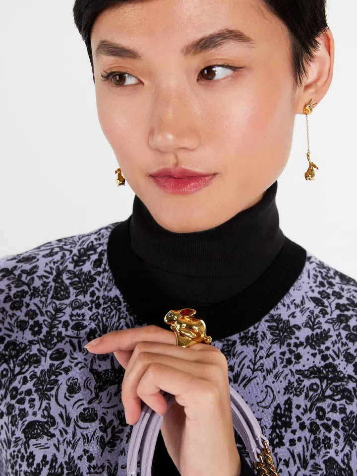 配饰方面,Kate Spade New York兔年限定珠宝系列也同样让人记忆深刻,3D萌兔项链耳饰套组和萌兔徽章项链耳饰套组,兼具了萌兔动静特性,别出心裁的将兔子造型装点柔美新意。