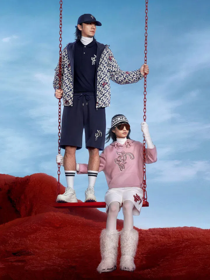 Roger Rabbit,源自斩获多个奥斯卡金像奖的创新影视大作《谁陷害了兔子罗杰(Who Framed Roger Rabbit)》,品牌以此为主题,Moncler的粉红和海军蓝字母夹克采用奢华轻质涂层尼龙制成,点缀醒目的品牌图案与Roger Rabbit刺绣贴片,鲜明诠释此系列青春学院风;双面连帽风衣,融入通体印花,缔造轻松风格和实用功能;亲子装与情侣装混搭单品,带来随心百变的穿搭可能性。嵌花针织按扣开衫、运动服、T恤和连帽衫,搭配棒球帽、趣味图案袜等配饰,塑就层次多变的时尚型格。