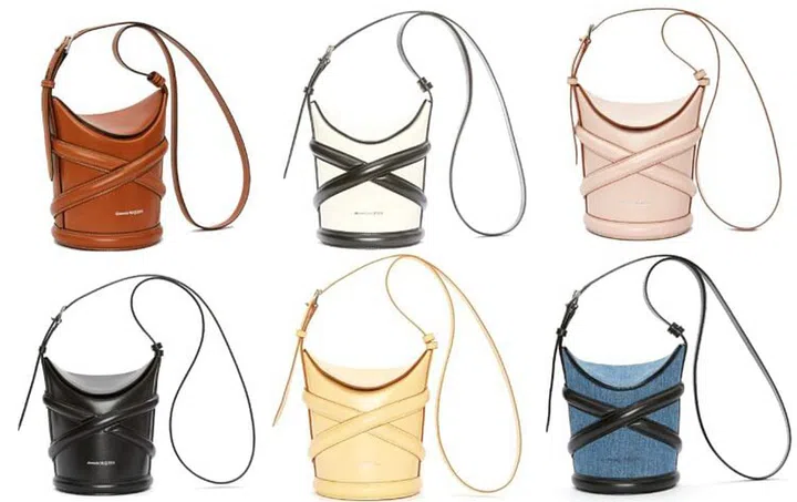 Alexander McQueen 的2021春夏系列作品以"第一束光"(First Light)为题,寓意疫情封锁中的希望和灵感。新季手袋强调雕塑感廓形设计,其中The Curve手袋以“马术挽具”为灵感,采用磁性双翻盖的开合设计勾勒出包身完美的椭圆廓形,配上纯手工精细包边的夸张绑带环绕包身,展现出强有力的时尚魅力。新系列共推出黑色、卡其色、米色、浅黄色、淡粉色、青绿色、丹宁布和黑白相间8种配色。