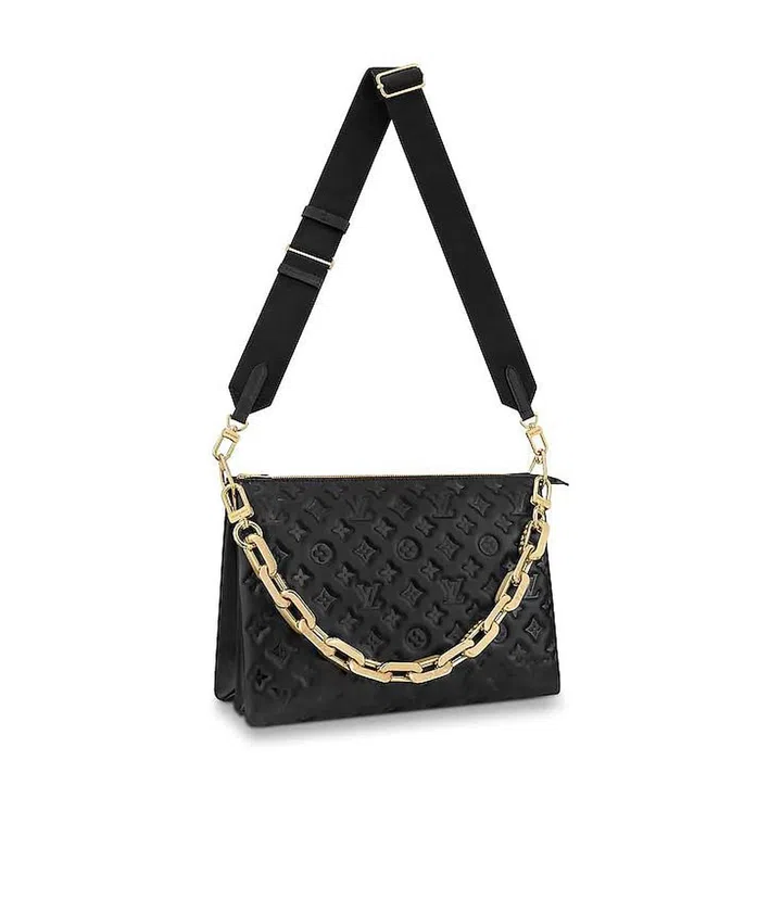 于Louis Vuitton 2021春夏时装秀上亮相的新款Coussin手袋,在法文中意思是“软枕”,采用Monogram 压纹蓬松绵羊皮塑造宛如靠枕的丰软质感,搭配可调节肩带和全新Edge链条,可肩背和斜挎,也能作为时下流行的腋下法棍包来使用。