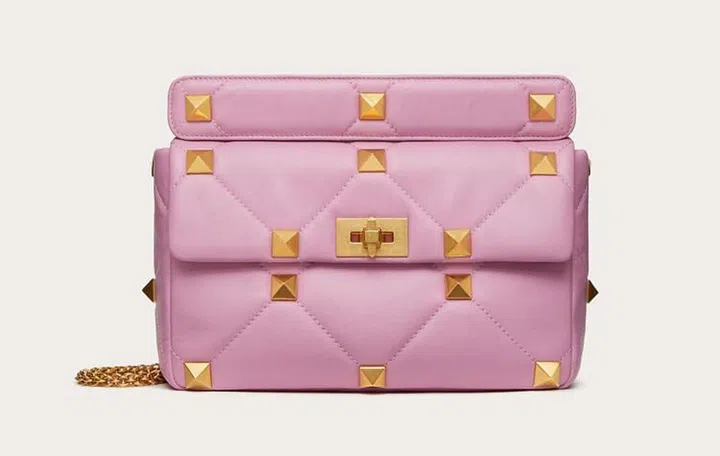 Valentino的铆钉元素在创意总监Pierpaolo Piccioli的笔下,面积变大、间距拉开,以“特大版”的方式在今季呈现。Valentino Roman Stud 系列手袋公共有斜背包、手提包等款式,以一系列鲜艳亮丽的色彩演绎,搭配纳帕小羊皮打造,柔中带有一丝干练与刚强。