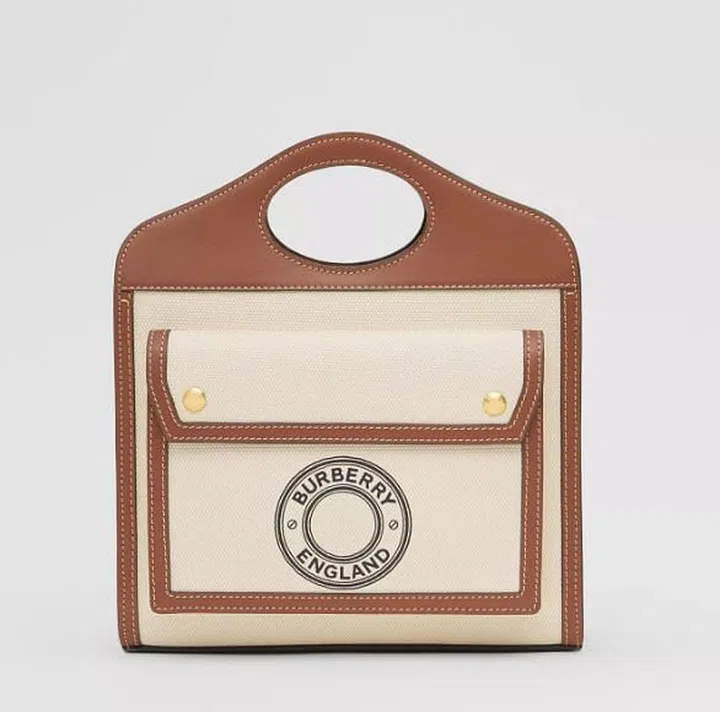 BURBERRY Mini Two-tone Canvas and Leather Pocket 手袋。