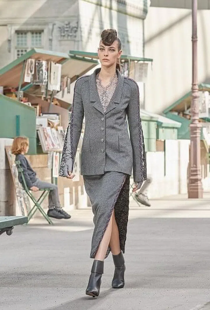 时尚Chanel 2018 秋冬高定系列:向巴黎的文学致敬出于对阅读与藏书的热爱,Chanel 创意总监Karl Lagerfeld以2018/19秋冬高级定制服系列向巴黎深厚悠久的文学积淀致敬。本季,老佛爷将巴黎大皇宫改造成塞纳河畔的街头,模特漫步于河畔旁,随着书报摊上摆放的各式与香奈儿女士相关的书籍、文件,让人行道变身为Chanel高定的伸展台。一起来看这场秀的精彩图集。文 / Hayley Zhang Yujie / 9 Jul 2018chanel, Chanel Haute Couture, Karl Lagerfeld, parisShare this articleallowfullscreenwebkitallowfullscreenmozallowfullscreenstyle="position: absolute; top: 0px; right: 0px; bottom: 0px; left: 0px; width: 100%; height: 100%;">[readon id="51185"]Chanel 2018/19秋冬高级定制服系列1/7老佛爷Karl Lagerfeld以象征18世纪法国文化影响力的法兰西学会大楼为背景,将巴黎大皇宫改造成塞纳河畔的街头,在岸边设有绿棚书报摊,上面摆放着各式与香奈儿女士有关的文件、书籍与明信片,洋溢着文学气息。旧书摊、长椅、巴黎街头……在柔和的阳光下,为我们展示了巴黎左岸生活的剪影,无处不挥洒着浪漫与潇洒。主打色调:灰色、黑色、银色、暗红2/7巴黎艺术与文学之城的标志性色彩,从历史建筑顶部的屋瓦灰,到夜晚塞纳河波光的银色,成为系列的主打色调。朝霞的淡紫色与落叶的暗红和棕色,也在套装款式中有所体现。主打色调:灰色、黑色、银色、暗红3/7晚礼服造型:内衬半身裙+金属光泽的大衣,零星点缀刺绣与锁边银色叶片,与哑光丝绒上衣对比鲜明。侧边拉链开衩设计4/7Karl Lagerfeld以斜纹软呢、丝绒与雪纺面料制成的半身裙与长裙,配以侧边拉链开衩设计,优雅地显露纤长的美腿。每个造型都从侧面展现同系配色的迷你裙,饰以斜纹软呢或亮片编结令整体线条更加颀长。侧边拉链开衩设计5/7拉链设计自成一派的风格贯穿于系列中,让Chanel服饰呈现崭新姿态。绣以编结的拉链在外套长袖侧边开衩,露出手套与撞色衬里。斜纹软呢套装的新诠释6/7品牌的经典斜纹软呢套装饰以羊毛编结滚边拉链,勾勒出外套鲜明的轮廓。绿色结婚礼服7/7Karl Lagerfeld 想象一位身披白纱的绿衣新娘,以全然摩登的手法演绎法兰西学会终身院士制服。采用黑色羊毛面料打造,绣以绿色与金色橄榄枝的法兰西学院院士袍,成为发布会最后结婚礼服造型的灵感源泉。chanel, Chanel Haute Couture, Karl Lagerfeld, parisShare this article