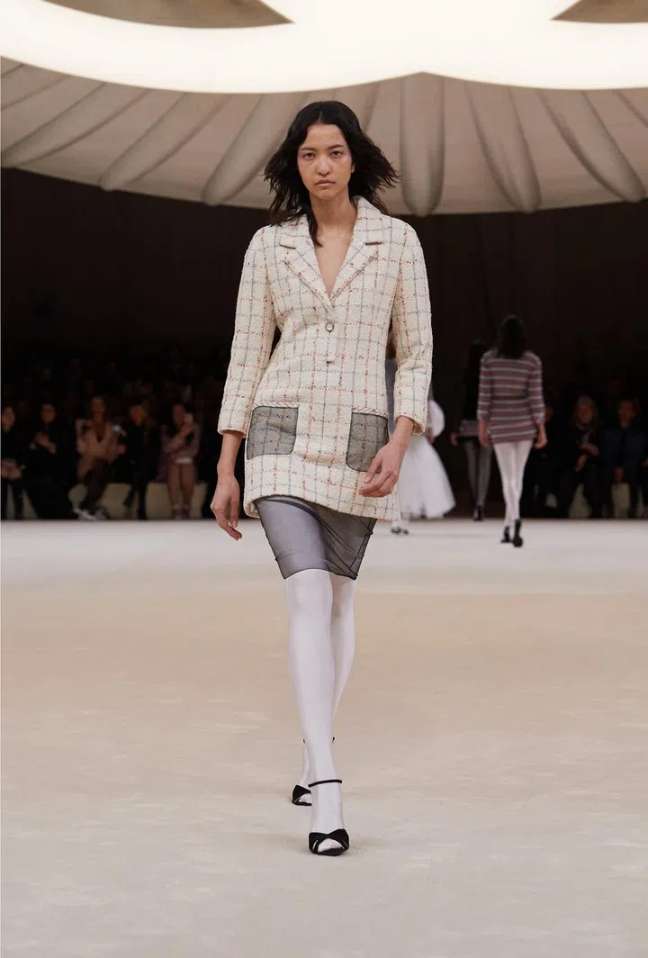 应Virginie Viard之邀,Kendrick Lamar、Dave Free和Mike Carson设计了一套让人回想起高级时装标志的布景,就像秀前发布的电影《The Button》一样,由Anna Mouglalis, Naomi Campbell和Margaret Qualley主演。这位身着薄纱的女演员、品牌大使和出色的舞者也为演出拉开了帷幕。