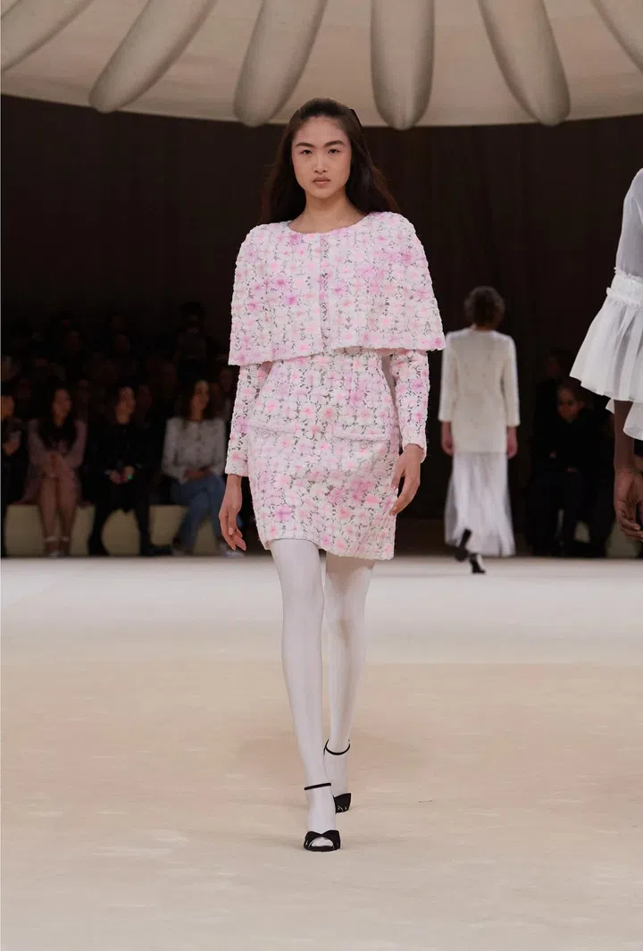 Chanel与舞蹈之间的联系充满活力,距Gabrielle Chanel首个芭蕾舞设计已过去一个世纪,以粉色和白色水彩画为主的系列将生动的色彩归功于Léon Bakst 和Sergei Diaghilev的俄罗斯芭蕾舞团。白色芭蕾舞紧身衣薄纱、Virginie Viard注入了当代文化的元素,搭配高跟鞋,挥洒时尚态度。