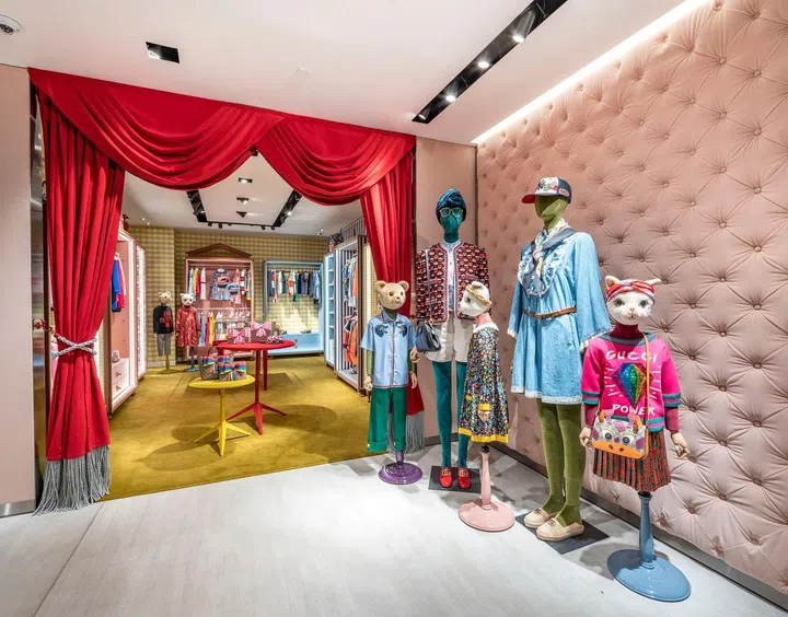 时尚Gucci百丽宫旗舰店以新面貌全面开业!经过数月翻新,位于乌节路百丽宫的Gucci旗舰店重新开幕!店内装潢结合了传统与现代、工业与浪漫等多元风格,让顾客沉醉于Gucci独特的华丽美学世界。两层的精品店汇集了品牌全新男女服装、手袋、鞋履及香氛等精品。店内也新设儿童服装区、Gucci Decor 家饰区及Gucci DIY角落,为顾客提供个性化的服务。一起来看看Gucci百丽宫的漂亮新面貌!文 / Hayley Zhang Yujie / 25 Jul 2018fashion, gucci, paragonShare this article过数月装修,位于乌节百丽宫的Gucci精品店全面开张! 1/4Gucci旗舰店占地10, 000平方英尺,分为两层,拥有独特的五层大理石外墙,提供各种各样的男女成衣、手袋、鞋履、手表、珠宝及配饰。此外,新店还新添Gucci儿童系列及Gucci Decor家饰系列。Gucci Decor 家饰系列及DIY服务2/4位于新店的二楼,设有品牌创意总监Alessandro Michele执掌后推出的Gucci Decor家饰系列,延续品牌不拘一格的设计美学,一系列丰富的家居饰品将时尚品味延伸到个人专属居家空间。另外,个性化DIY定制服务亦在此地,顾客可选择各种Gucci风格的刺绣素材,组合并创作出一款属于自己的Dionysus/Sylvie手袋,展现自我的时尚风格。Gucci 粉色定制空间3/4在这粉色空间里,顾客也可预订专属购物服务,在私密的贵宾专区中,享受独家且奢华的购物体验。Gucci新增儿童服装区4/4儿童服装不再仅限于Gucci位于滨海湾金沙购物商城的精品店,如今Gucci百丽宫新添儿童服装区域,为孩子打造快乐的购物天堂。fashion, gucci, paragonShare this article