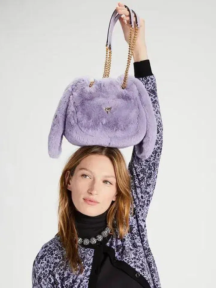 这款Kate Spade New York兔年限定fluff链条包,包身形似兔子造型,精选人造皮草,打造兔子细腻毛绒感,为农历新年造型注入可爱俏皮气息。