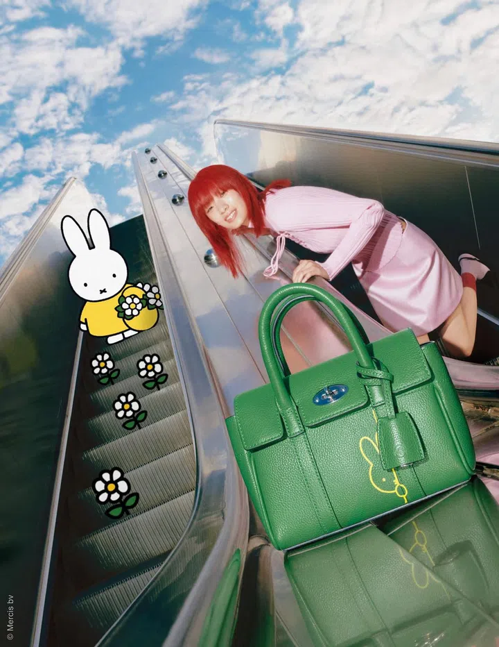 为庆祝新春兔年的到来,Mulberry携手广受喜爱的Miffy米菲推出联名系列。限量版Mulberry x Miffy胶囊系列则见证了荷兰漫画家Dick Bruna笔下的Miffy的好奇历险之举,将其呈现在皮具和配饰上。这款经典Bayswater包款采用欢快的草绿色调,巧妙融合Miffy的醒目图样,呼应了Miffy标志性的简洁设计风格和明亮色彩,同时展现了Mulberry对英伦传统的现代诠释,以妙趣活泼的方式将两个标志性的品牌结合在一起。