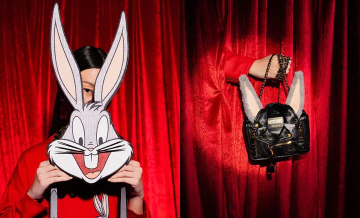 迎接兔年,Moschino创意总监Jeremy Scott将美国著名卡通《Looney Tunes》中的主要角色——兔巴哥(Bugs Bunny)注入农历新年单品设计中,像是装饰着人造毛皮兔耳朵的Moschino经典机车包,酷劲中带有俏皮韵味,令人会心一笑;或是以Bugs Bunny头像为设计的卡通包,传递兔八哥的玩味童真,重启童年玩趣回忆。
