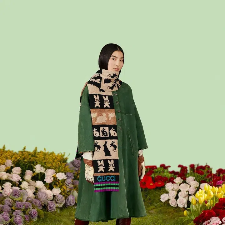 为庆祝兔年新春的到来,Gucci呈现一系列色彩靓丽的甄选新品,并氛围三大主题风格:运用大量色块撞色拼接的“普普风”、色彩缤纷的“涂鸦风”,以及优雅知性的“花卉风”。鞋履方面,Gucci的后系带中跟浅口鞋和平地芭蕾舞鞋善用兔耳朵造型蝴蝶结,以别处心裁的方式展现兔年的时尚创意。另外,也有充满怀旧意味的兔子图案点缀在羊毛提花围巾之上,表达品牌对大自然之美的热爱。