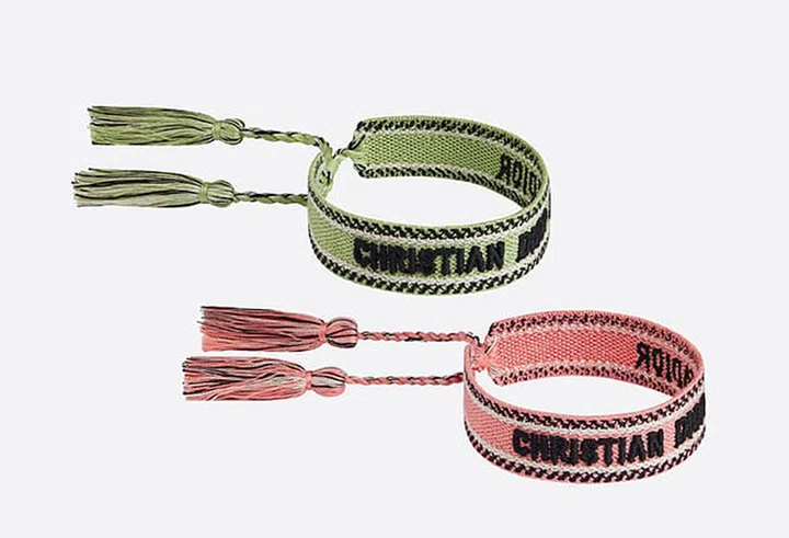 牛年的生肖幸运数字和幸运色你看了吗?如果你或你的亲友是属猪、狗、马、龙、兔(绿色为幸运色),不妨购买这套Dior的刺绣手链(含两款),上面印有“Christian Dior J’Adior”字样,还有粉红色以供替换佩戴或叠搭。
